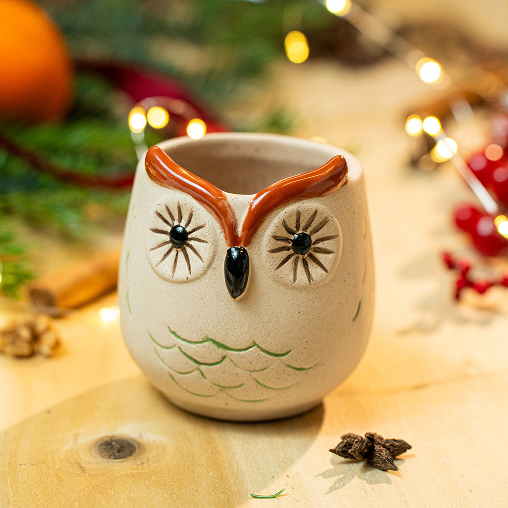 Owl cup Beige decorative house accessory