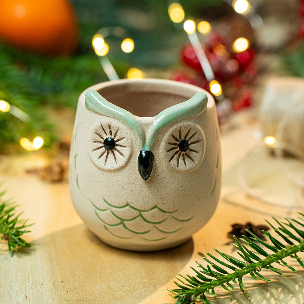 Green Owl cup Green paper ornament for the Christmas tree