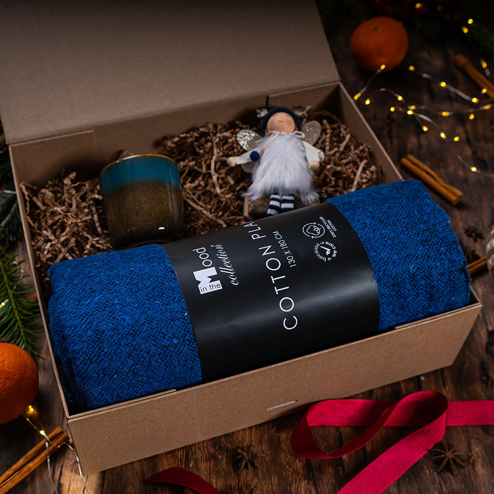 Blue blanket Black/nature gift box (35x30x10 cm)